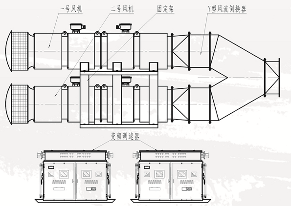 ![]() ![]() 礦井智能局部通風(fēng)系統(tǒng)產(chǎn)品介紹系統(tǒng)組成: 該系統(tǒng)是由FBD系列礦用隔爆型壓入式對旋軸流局部通風(fēng)機(jī)、Y型風(fēng)流倒換器、固定架、BPJ系列煤礦風(fēng)機(jī)用隔爆兼本質(zhì)安全型變頻調(diào)速器等單元組成。 系統(tǒng)功能概述: 礦井智能局部通風(fēng)系統(tǒng)是一個閉環(huán)控制系統(tǒng),它的主要功能是通過井下傳感器、井下分站采集的參數(shù)來確定供風(fēng)量的多少,避免了現(xiàn)有局部通風(fēng)機(jī)供風(fēng)的“一風(fēng)吹”現(xiàn)象,從而解決礦井局部通風(fēng)按需供風(fēng)的問題。系統(tǒng)從安全和節(jié)能的要求出發(fā),采用PLC與變頻器組成的控制系統(tǒng),對風(fēng)機(jī)轉(zhuǎn)速實時調(diào)控,達(dá)到“實時預(yù)警、人機(jī)雙控、按需供風(fēng)、防災(zāi)減災(zāi)”的效果,從而使礦井局部通風(fēng)、瓦斯自動排放高效安全,降低瓦斯事故,節(jié)能省電。