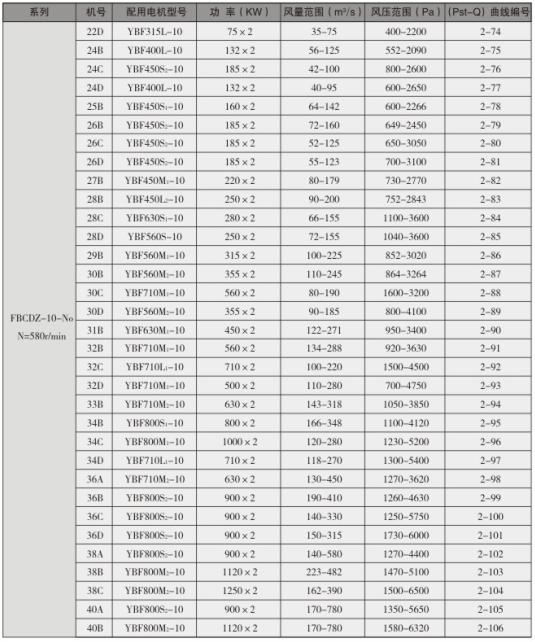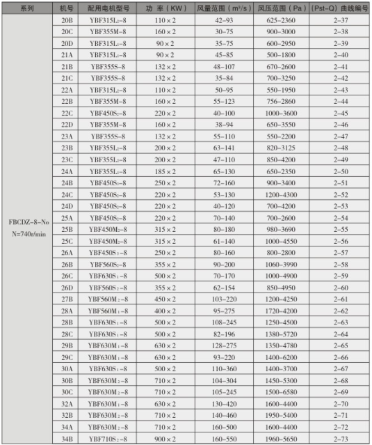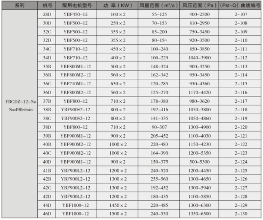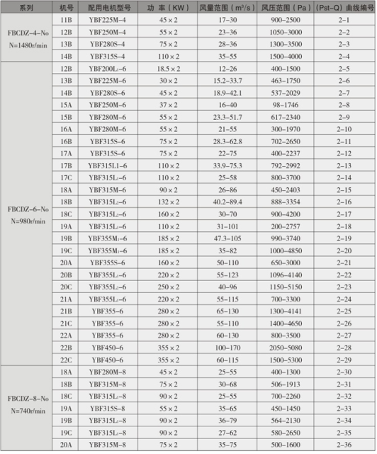 FBCDZ系列煤礦地面用防爆抽出式軸流通風機性能參數(shù)(二)